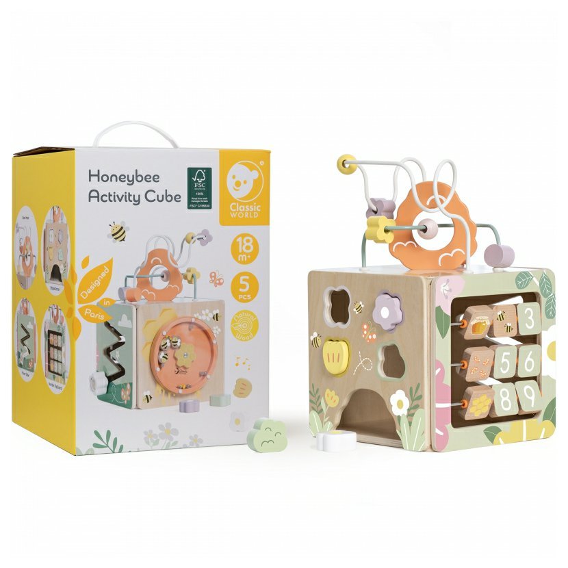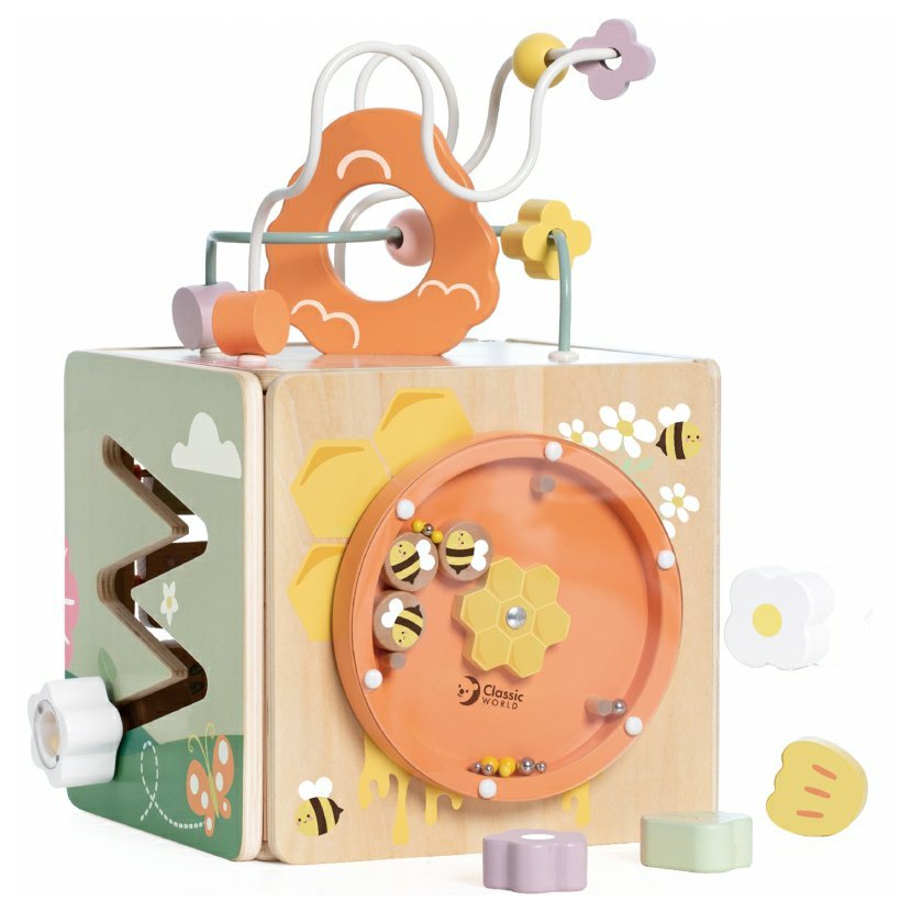 Dřevěná edukativní kostka značky Classic World je ideální hračkou pro nejmenší děti od 18 měsíců.