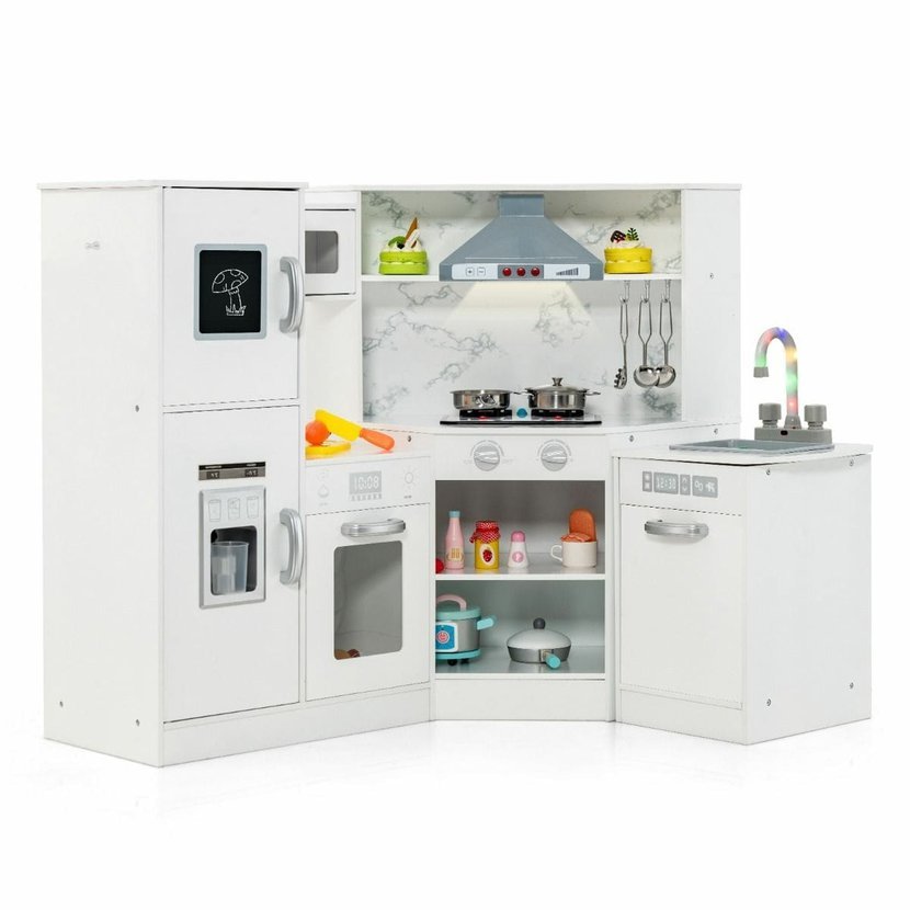 Tato elegantní bílá dětská kuchyňka je ideálním místem pro malé kuchaře, kteří chtějí napodobit vaření a přípravu jídel jako dospělí.