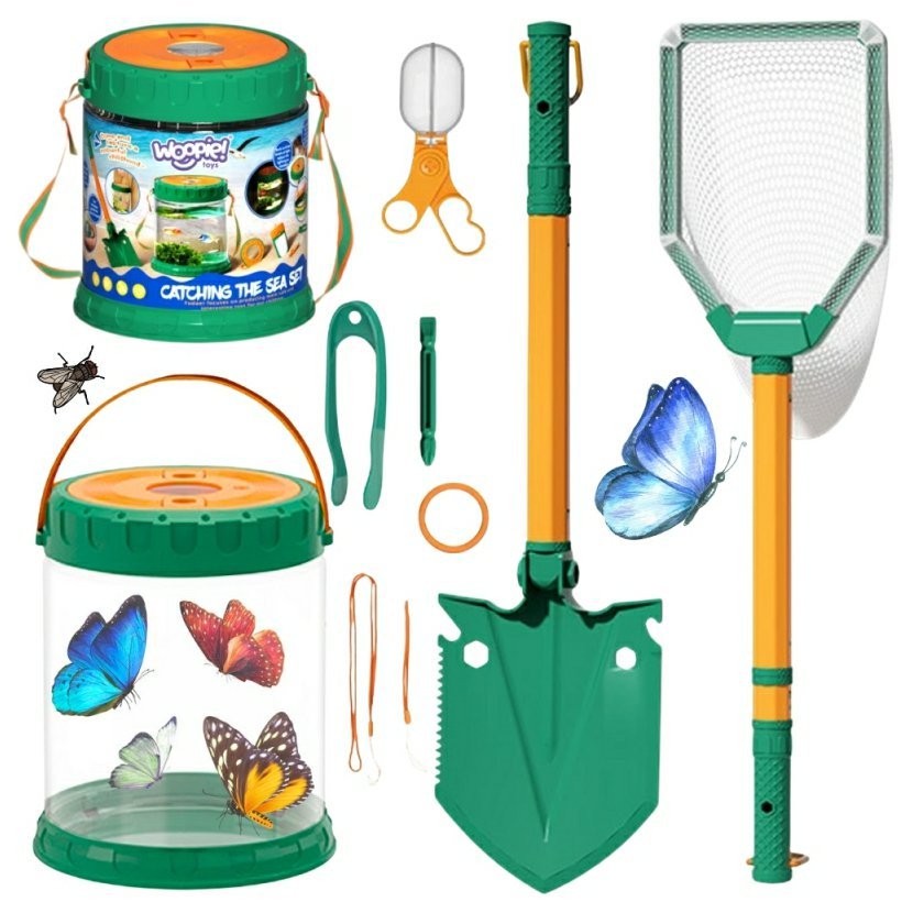 Dětská průzkumnická sada na Motýly je perfektní sada pro malé dobrodruhy, kteří chtějí objevovat svět kolem sebe. S barevnou síťkou na motýly a ryby, praktickým pojemníkem s lupou a dalším vybavením se každá procházka stává malou expedicí plnou objevů. Děti si mohou chytat hmyz, sledovat jeho chování a poznávat zákonitosti přírody zblízka.