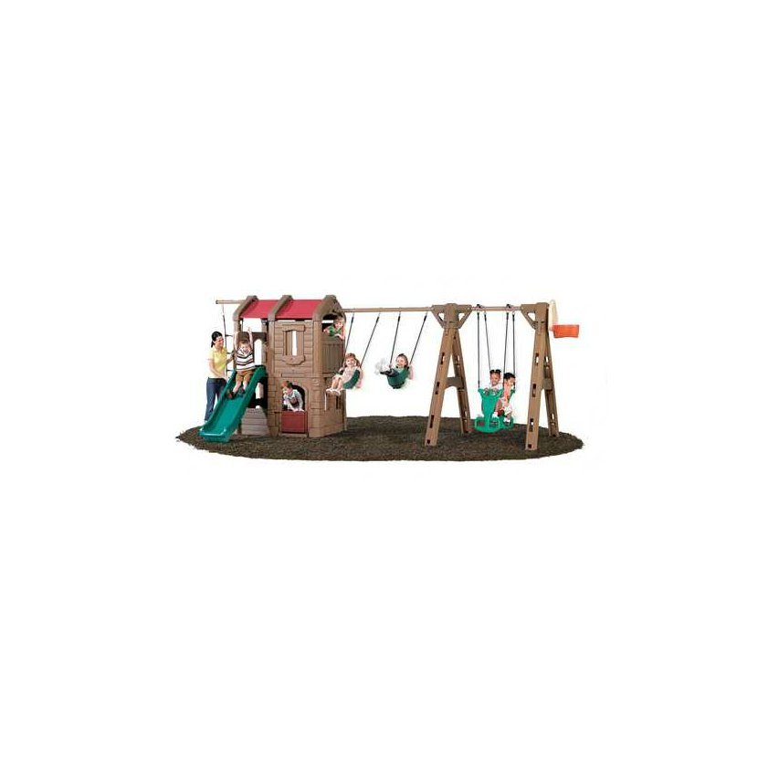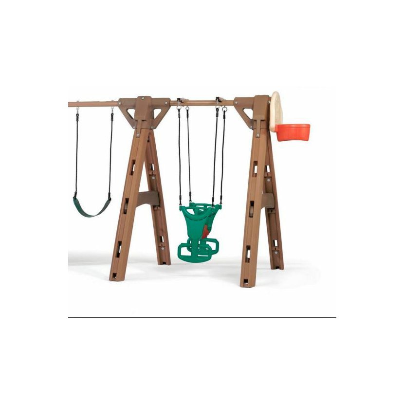 • sestava dále nabízí houpání na třech houpačkách a basketbalový koš (míč není součástí vybavení)
