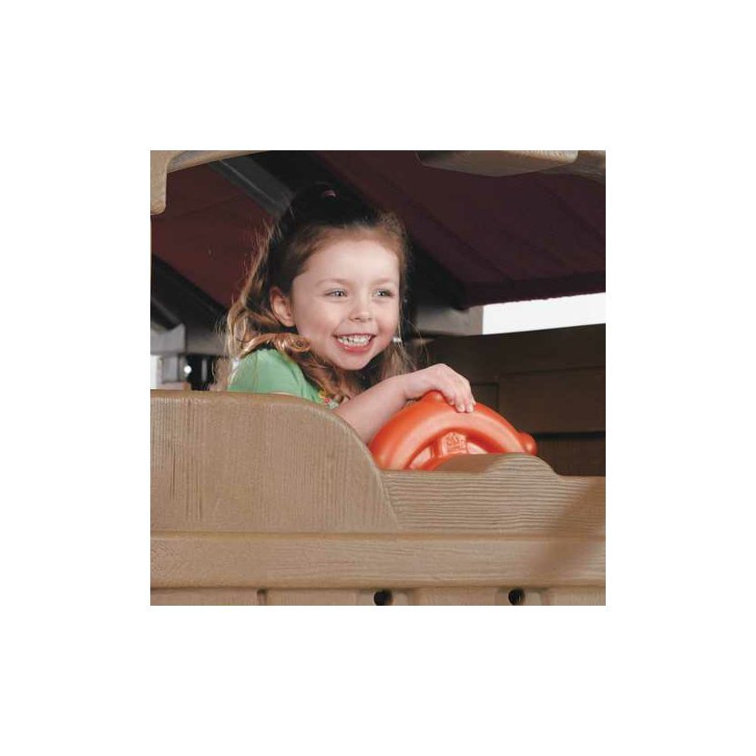 • dvoupatrový domeček s balkónovým zábradlím, kormidlem a skluzavkou