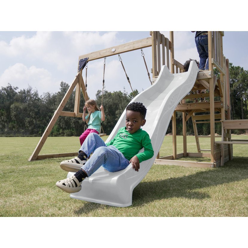 Skluzavka v délce 220 cm poskytne dětem nezapomenutelný zážitek z jízdy. Horní část věže má prostorný balkón, kde mohou děti využít prostor k zábavné hře. Ve spodní části věže je piknik modul, kde si děti mohou chvilku odpočinout. Pod podestou je prostor pro pískoviště.