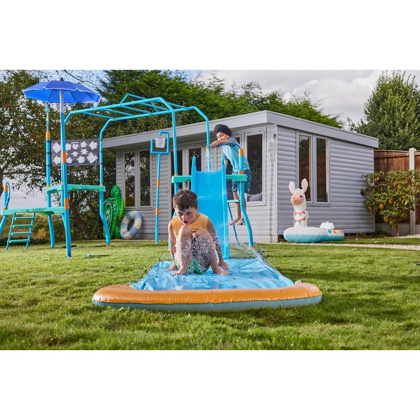 Dětské hřiště Plum Water Park Blaster je perfektním řešením, jak přenést zábavu z aquaparku na zahradu. Děti mohou lézt, šplhat a klouzat se, jednoduše připojte hadici, nechte vodu téct a zábava může začít!