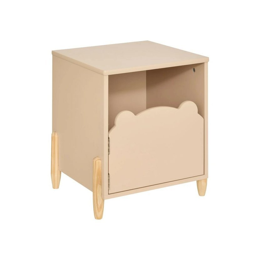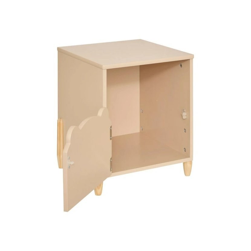 Stolek bude skvělým doplňkem k dětské postýlce pro lampičku nebo odložení pohádkových knížek. Otevírací dvířka skrývají úložný prostor.