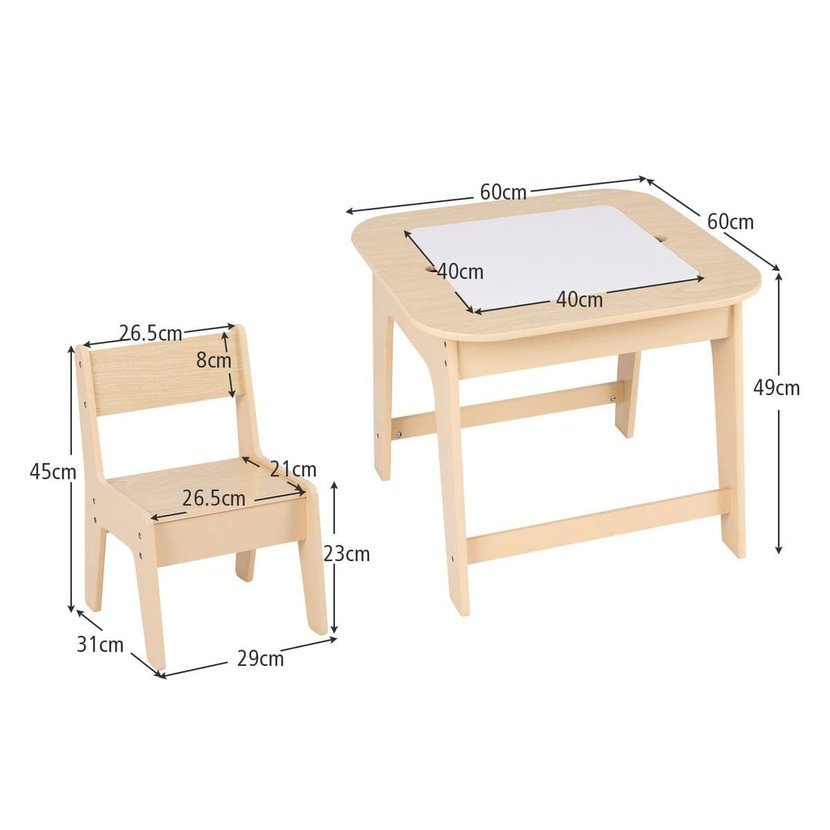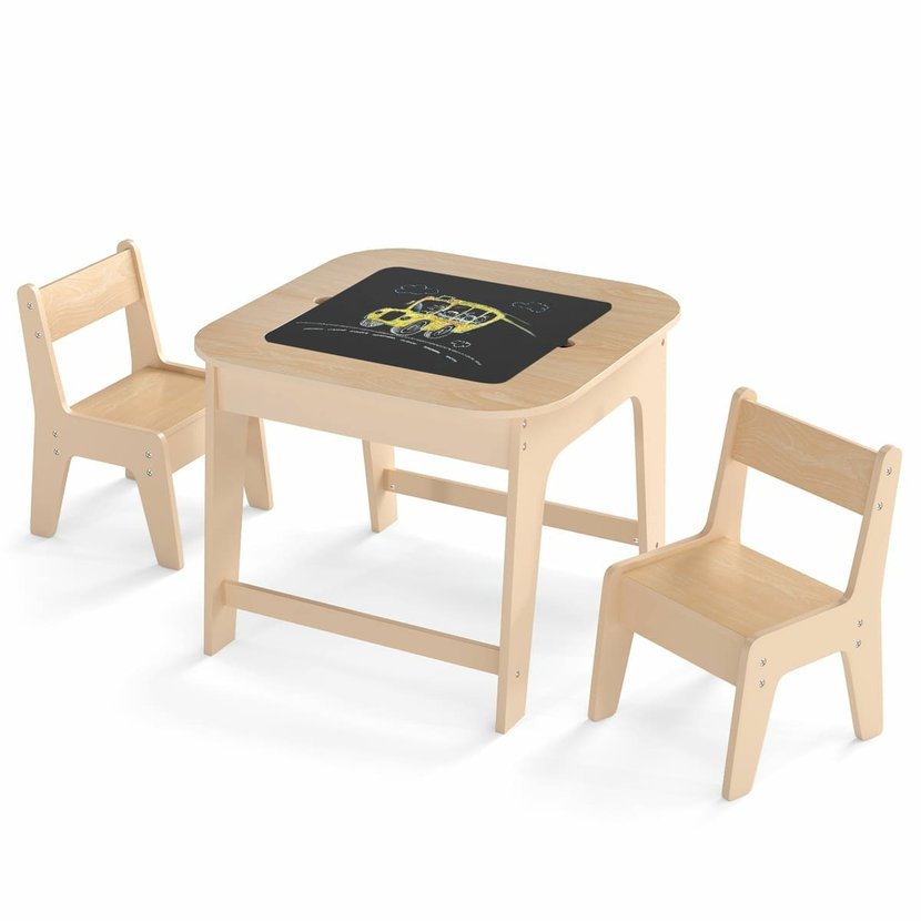 Vaše dítě si zamiluje tento zábavný a praktický set se stolem a dvěma židlemi v přírodním provedení, navržený tak, aby byl praktický a hezký za každé situace.