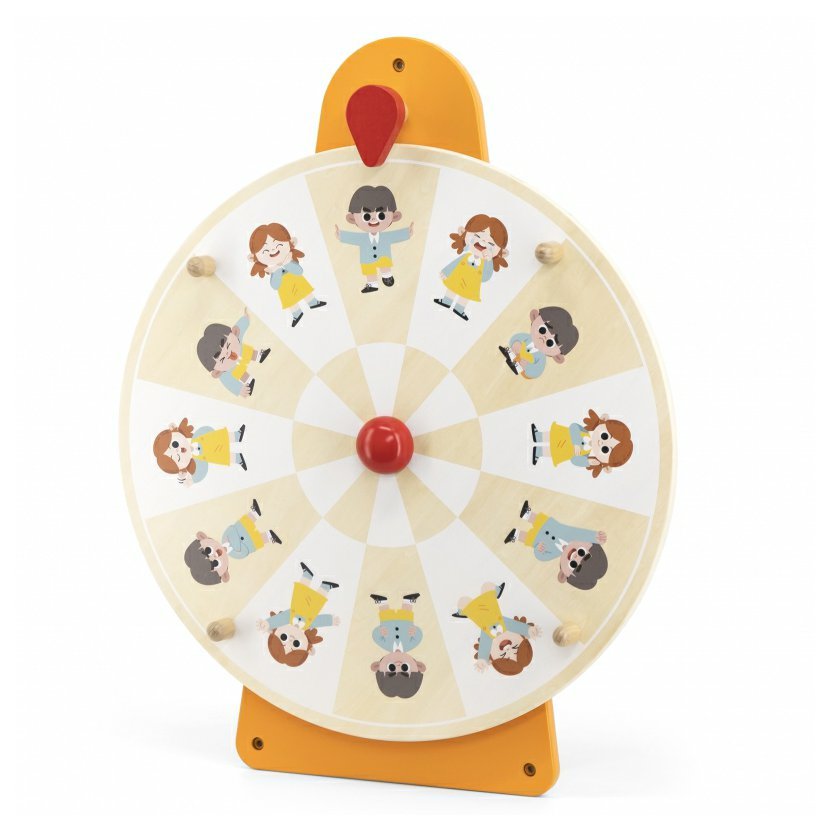 Stačí otočit kolečkem a šipka ukáže jeden z dvanácti výrazů obličeje – dítě může danou emoci napodobit, pojmenovat nebo popsat, co ji způsobuje. Hravým způsobem se tak učí chápat své vlastní pocity i pocity ostatních.