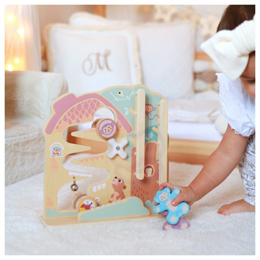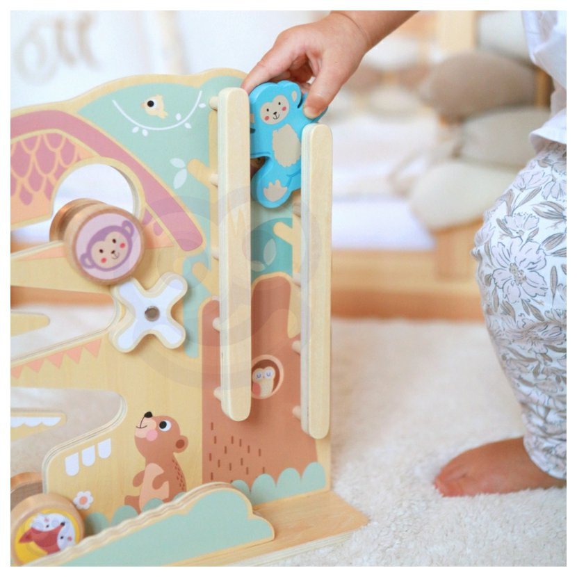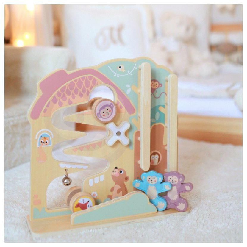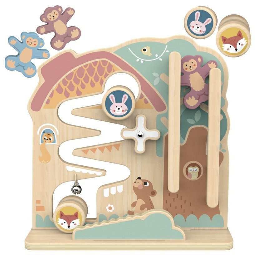 Roztomilé motivy lesa s liškou, opičkami a králíčkem přinášejí do hry zábavu a inspiraci, zatímco kvalitní dřevo a bezpečné barvy zajišťují dlouhou životnost a bezpečnost.