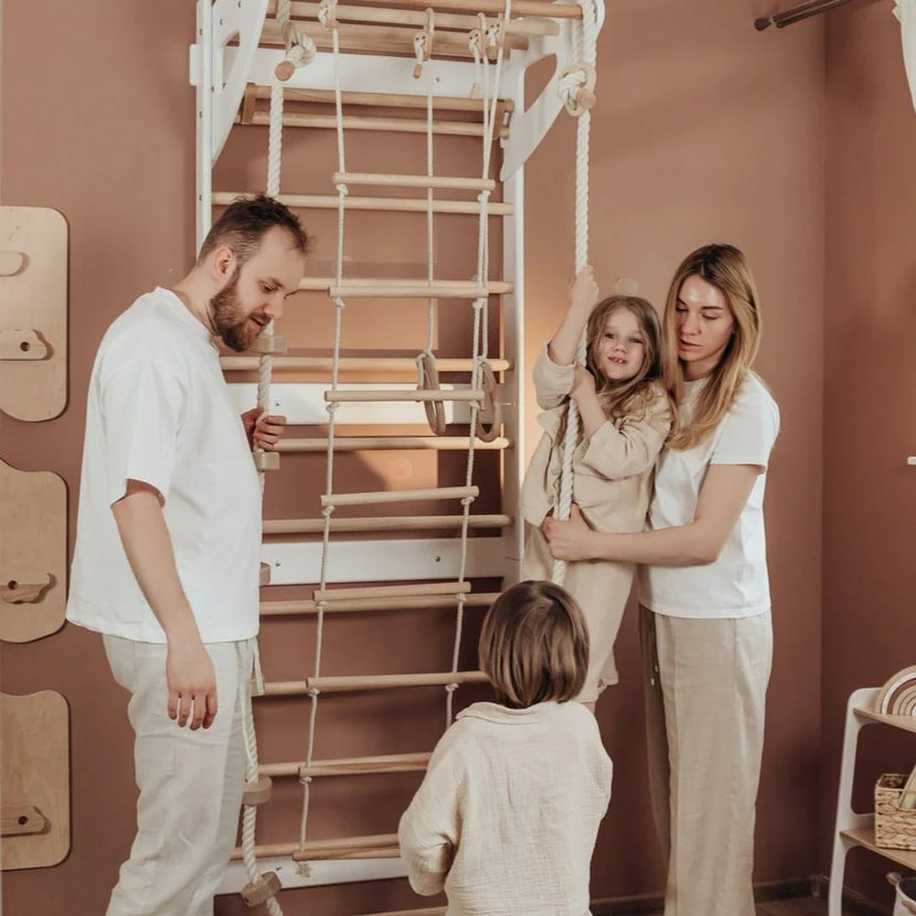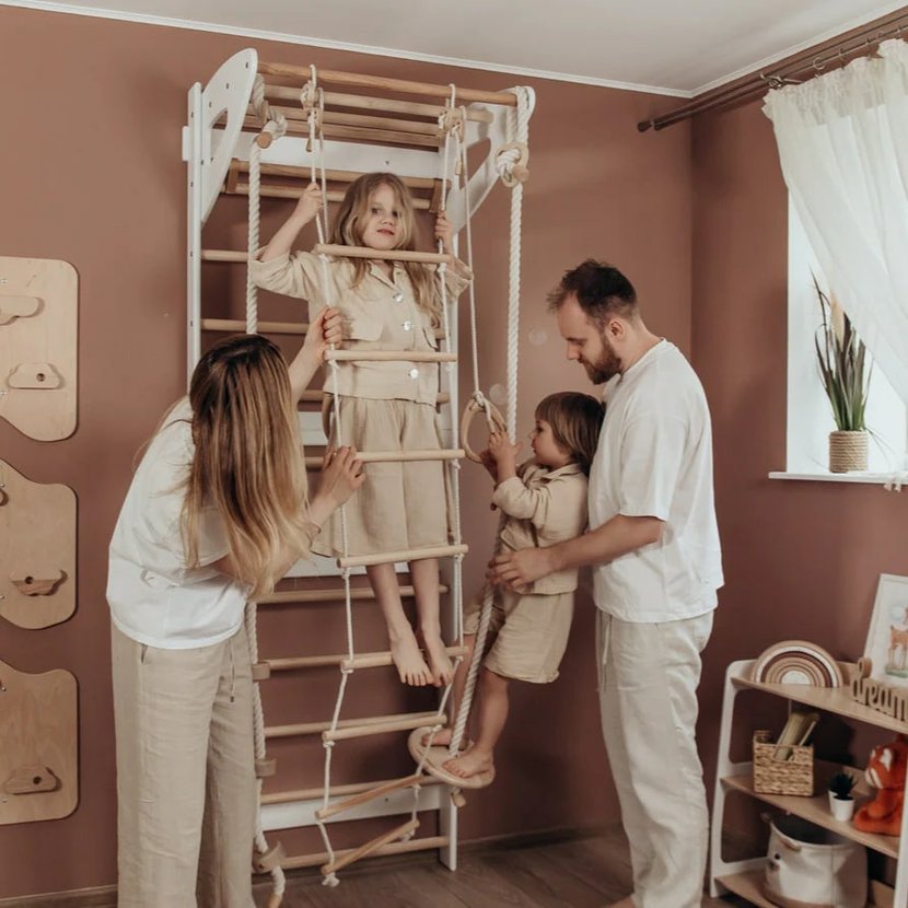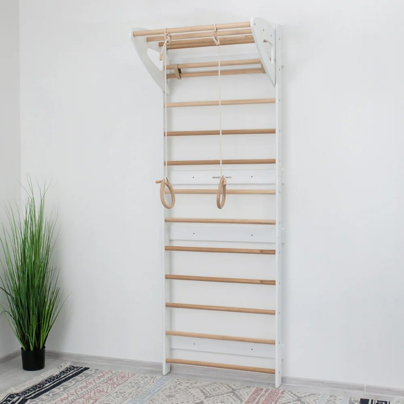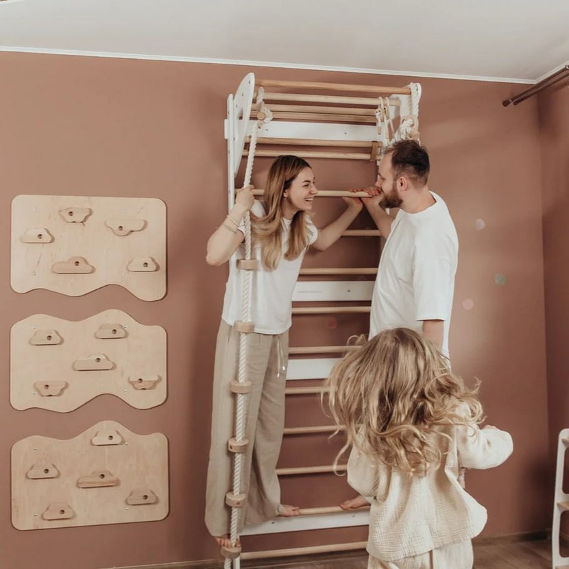 Třídílná Swedish Wall je ideální volbou pro rodiče, kteří chtějí dětem nabídnout možnost aktivního pohybu přímo doma – bezpečně, zábavně a v duchu skandinávského minimalismu.