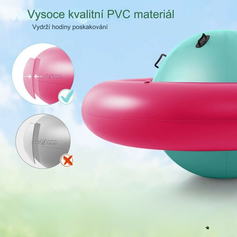 Nafukovací skákací míč je vyroben z PVC materiálu o tloušťce 0,5 mm a jeho použití je bezpečné a odolné, aby poskytoval roky zábavy.