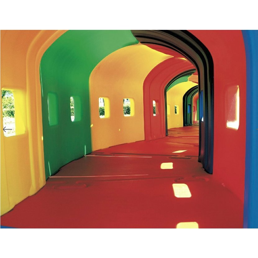 Veselé plastová prolézačka Wagon Toy je modulární systém, z kterého lze vytvořit libovolné kombinace sestav propojením jednotlivých modulárních prvků.