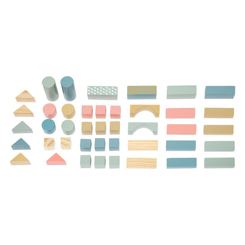 Postavte vysoké věže, domy, mosty, garáže s touto sadou 50 kostek v krásných pastelových barvách.
