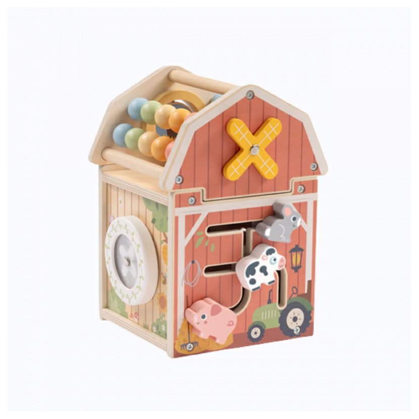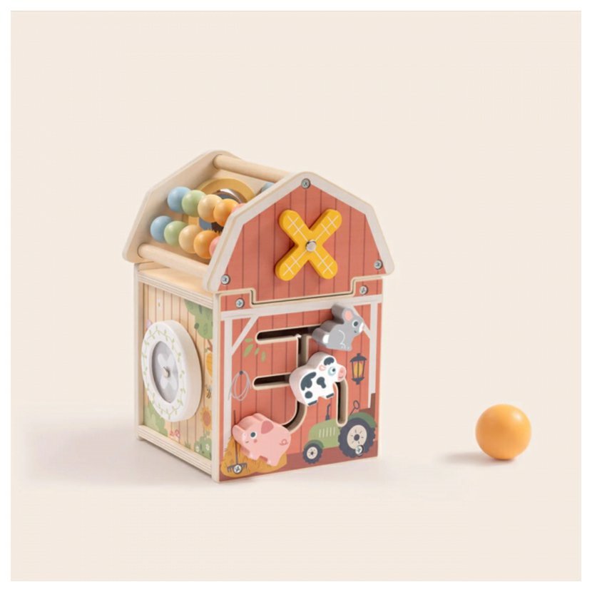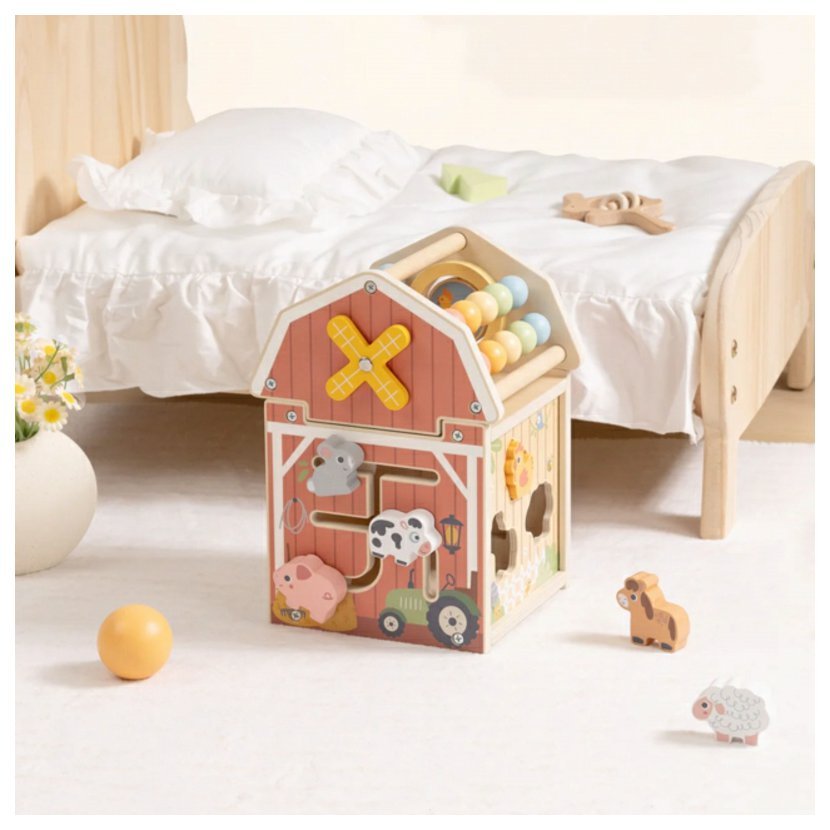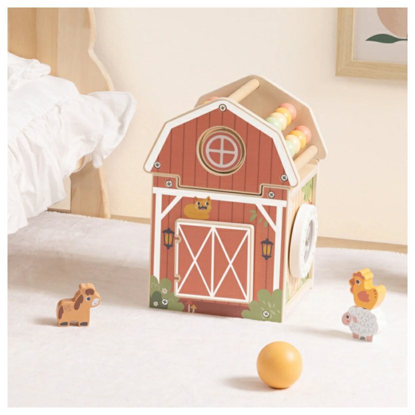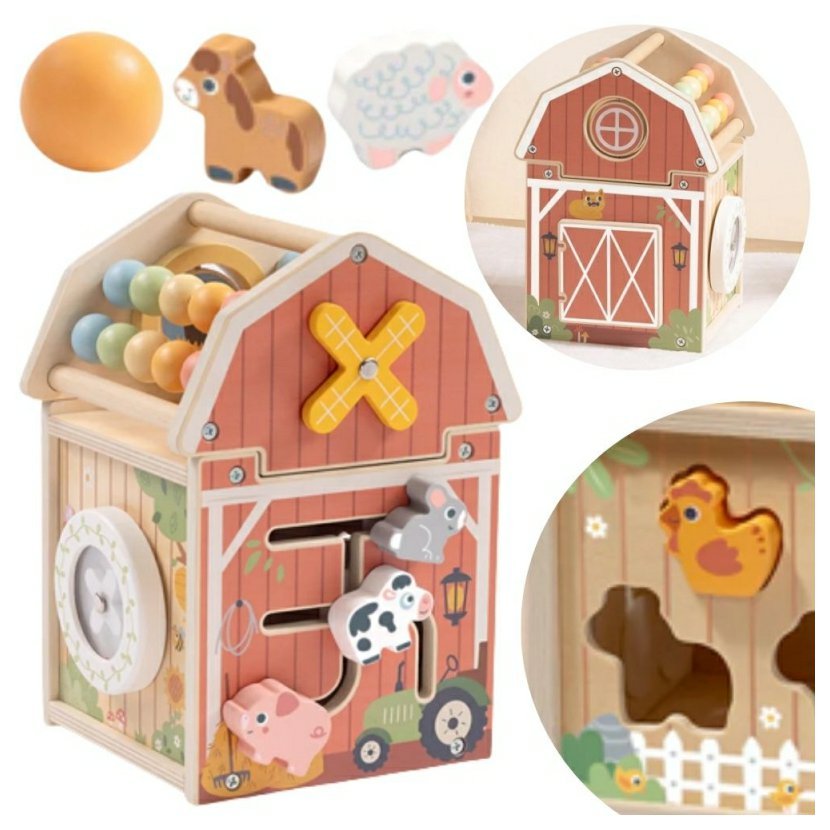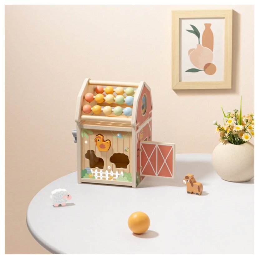 Stodola je multifunkční Montessori hračka, která nabízí zábavu i učení zároveň. Děti vkládají tvary do odpovídajících otvorů, pohybují figurkami uvnitř stodoly a trénují jemnou motoriku, logiku a počítání. Barevné korálky na střeše podporují počítací dovednosti, zatímco odnímatelná dvířka umožňují objevovat vnitřní prostor. Vyrobena z kvalitního dřeva s bezpečnými barvami.
